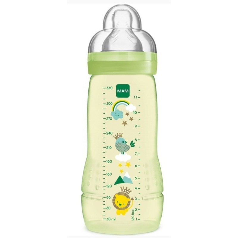 No use productos de limpieza abrasivos. Solo se deben utilizar cepillos de cerdas suaves o una esponja. Los estropajos duros pueden rallar el plástico. Esterilice el biberón siguiendo uno de estos métodos: esterilización con vapor (eléctrica o en el microondas según las instrucciones del fabricante), hirviéndolo en agua durante al menos 5 minutos o con una solución esterilizadora para biberones.